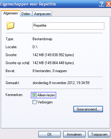 kenmerk "alleen lezen" van map verwijderen