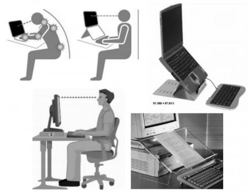 Informatie en tips omtrent correct computergebruik en houding met inbegrip van RSI. Niet alleen uw computer staat centraal op het PCH, we besteden ook graag de nodige aandacht aan onze gebruikers. In onderstaande uitleg kom je meer te weten over klachten van langdurig computerwerk en preventie ervan. Wat is RSI? RSI staat voor Repetitive Strain Injury, kortweg letsels door langdurig dezelfde beweging of houding aan te nemen of uit te voeren. De overgrote meerderheid van de klachten die ontstaan door intensief computeren kunnen we klasseren onder RSI. Maar niet alleen mensen die vele uren achter een computerscherm doorbrengen lopen gevaar, iedereen die vaak dezelfde beweging of houding aanhoudt loopt een risico op RSI. Hoe weet ik of ik RSI heb? Het ontstaan van het letsel doorloopt verschillende fasen. In de eerste fase treedt af en toe vermoeidheid of pijn op in de nek, schouders of armen. De pijn verdwijnt vrij snel van zodra de arbeid even is gestopt en tegen de avond of in het weekend heb je nergens meer last van. Ga je gewoon door met werken dan kan na verloop van weken of maanden de klacht evolueren naar een tweede fase. Hierin is er duidelijk waarneembare pijn die blijft aanhouden na het werken. Je werk uitvoeren gaat nog wel, maar is pijnlijk. Laat je dit onbehandeld dan komt men terecht in de derde en laatste fase. Er is een continue hevige pijn die constant aanwezig is. Werken is nagenoeg onmogelijk en sommige dagelijkse activiteiten zijn beperkt. Hoe ontstaat het? Over het ontstaansmechanisme valt heel wat te zeggen, maar we houden het hier graag bij de essentie. Het is vastgesteld dat de grootte van spierkracht geen enkele invloed heeft op RSI. Een haarfijne juffrouw heeft evenveel kans op RSI dan een beer van een man met enorme spierballen. Zoals hierboven al vermeld, is langdurig eenzelfde beweging of houding aannemen of aanhouden de boosdoener voor ons lichaam. Een slechte houding of bv. het constant typen plaatst spanning op onze spieren, dit terwijl het langdurig belasten van de spieren en bindweefsels nefast is. Hoe voorkomen? Dat RSI geen pretje is, mag dan wel duidelijk zijn. Voorkomen is vaak beter dan genezen... en dat is hier niet anders. Wanneer je talloze uren achter je computer doorbrengt, probeer dan volgende zaken zeker te respecteren, ze zullen je gezondheid ten goede komen! Zorg voor een ergonomische werkhouding. De hoogte van je stoel, de afstand van je rugleuning zijn zaken die je zeer eenvoudig kan aanpassen. Zorg voor een goede stand en afstand van scherm, toetsenbord en muis. Zorg dat je pols geen knik maakt wanneer je de muis bedient, maak eventueel gebruik van een ergonomische muis! Maak gebruik van micropauzes. Micropauzes zijn korte rustmomenten van circa 20 seconden waarbij je alle spieren eens losmaakt, stretcht of ontspant. Het stretchen van de spieren bevordert de bloeddoorstroming. Voldoende afwisseling van taken en soorten taken. Wissel bv. het schrijven van brieven af met kopieën gaan nemen of het inscannen van documenten. Vermijd stress in elk geval. Stress is een heel belangrijke risicofactor voor RSI. Wanneer ons lichaam onder stress staat, worden sowieso de spieren lichtjes opgespannen. Dit is geen goede zaak en kan tot pijn leiden. Ook een rumoerige omgeving zorgt voor een verhoogde spierspanning. Maak gebruik van een documenthouder om je nekspieren niet nodeloos onder spanning te plaatsen. Een juiste verlichting in de werkruimte. Wanneer er onvoldoende licht in de werkruimte is, verandert men al snel van houding, vaak in negatieve zin. Een goede slaaphouding. Tijdens onze slaap herstellen alle weefsels van de belasting die ze gedurende de dag hebben ondergaan. Het is een foutieve gedachte dat weefsels snel weer herstellen, het herstelproces van bindweefsel duurt dubbel zo lang als de duur van de belasting. Gun je lichaam dus die herstelperiode! Het lijken heel wat tips om te onthouden, maar tracht er zeker rekening mee te houden. Er is maar één regel die dit alles overtreft: luister naar je lichaam! Als je klachten hebt, wacht er niet mee: een RSI patiënt in fase 3 herstelt bijna nooit volledig… Opgelet bij laptops! Indien je langer dan 2 uur op een laptop moet werken, wordt een laptophouder ten zeerste aangeraden (zie afbeelding laptophouder en documenthouder hieronder). Ik heb RSI, wat kan ik doen? Mensen met klachten wachten best niet te lang om stappen te ondernemen. Afhankelijk van de fase waarin men zich bevindt, kan men ofwel zelf een gunstigere werkruimte creëren door een betere opstelling/houding of door contact op te nemen met een arts of kinesist/fysiotherapeut. RSI letsels genezen nooit spontaan, behandeling is altijd aangewezen. Heb je nog specifieke vragen of is iets niet geheel duidelijk? Laat het gerust weten in een reactie hieronder. Wij proberen deze zo correct mogelijk te beantwoorden. PCH is in geen mate aansprakelijk voor adviezen of hulpverlening op vlak van gezondheid. Neem daarom bij ernstige zaken steeds contact op met een erkend zorgverlener.