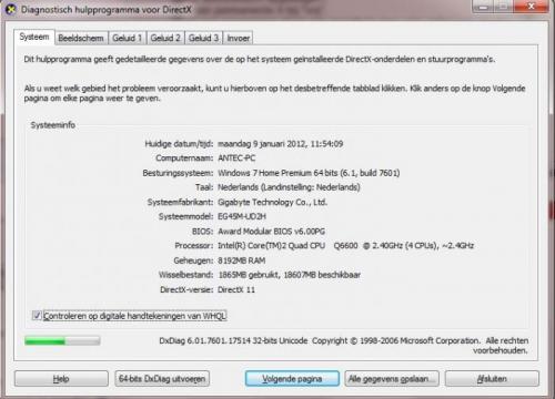 heb de instellingen veranderd naar wat je me zei, pc opnieuw opgestart.... geen verandering indien er misverstanden zouden ontstaan omdat ik me misschien verkeerd uitdruk, foto's in bijlage: foto 1 : direct na heropstarten pc foto 2 : na afsluiten back-up programma foto 3 : instellingen virtueel geheugen (het probleem doet zich altijd voor met eender welk programma of eender welke installatie, ik gebruik nu dit programma om hem zo snel mogelijk zijn geheugen te laten opgebruiken zodat we kunnen zien hoe hij reageert)