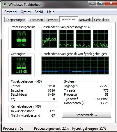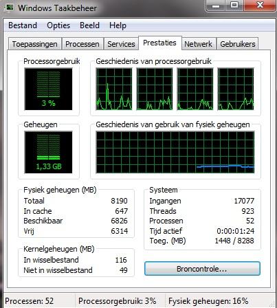 Hallo, sinds enkele maanden heb ik een probleem met mijn pc tijdens installaties of tijdens het gebruik van zwaardere programma's... het vrij fysiek geheugen gaat direct naar 0mb, en dan kan je maar beter een wandeling gaan maken want vanaf dan verloopt alles tergend traag de pc heeft 8gb ram en een 64-bit systeem dus ik snap het niet meer. Herinstallatie OS heeft geen zin, heb zelfs de indruk dat het dan nog erger wordt. heb nu pc heropgestart (gelukkig werd dit bericht automatisch opgeslagen) de back-up die werd gemaakt zorgde weer voor een permanente 0 bij "vrij". het grootste probleem is dat na het afsluiten van een programma of na een installatie het vrije geheugen slecht enkele 100 mb wordt; terwijl het ervoor zo'n 5gb was. hoop dat iemand mij hierbij kan helpen? [ATTACH]undefined[/ATTACH]