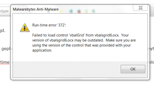 Hi Kweezie Wabbit, Ik heb je instructies opgevolgd. Na Zorg ervoor dat er een vinkje geplaatst is voor Update Malwarebytes' Anti-Malware en Start Malwarebytes' Anti-Malware, Klik daarna op "Voltooien". kreeg ik de foutmelding "Runtime error '0'". Deze heb ik met OK weggeklikt. Daarop volgde de foutmelding "Runtime error '372', zie bijgevoegd knipsel. Ik wacht je advies af voor ik verder ga. Groetjes, Ymkje