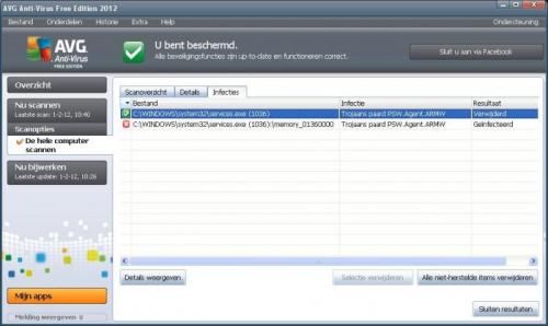 Helaas, AVG geeft nog steeds dezelfde melding . Zie de bijgevoegde screenshots voor de meldingen. Ondanks de melding dat het verwijderd is door AVG blijft hij toch terug komen. Dank -