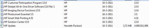 Hoi Clarkie, Alvast dank voor je meedenken! Boven beschreven procedure heb ik al verschillende malen proberen uit te voeren, maar ik strand al bij het eerste punt: het verwijderen van de HP bestanden in Programma's en Onderdelen gaat niet. De volgende bestanden die ik niet weg krijg, voeg ik bij in een bijlage. Als ik er met rechts op klik, krijg ik dit te zien: verwijderen/wijzigen. Hierop klikken heeft geen enkel effect. Hoe krijg ik die software weg?