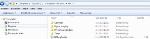 Er staat in de lijst Alle Programma's niets van HP. ---------- Post toegevoegd om 11:34 ---------- Vorige post was om 11:31 ---------- Als ik in Program Files met rechts op de HP map klik, kan ik hem ook niet verwijderen: er komt dan het volgende bericht: "de bewerking kan niet worden voltooid, omdat de map of een bestand in de map in een ander programma is geopend". Dit is echter niet het geval: de map (of een bestand uit de map) is NIET geopend!