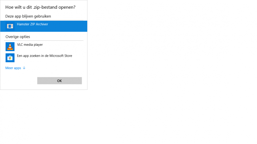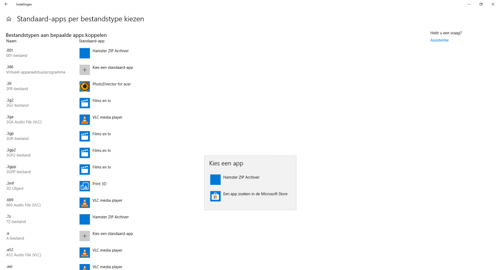 Heb geprobeerd de zip bestanden aan de Verkenner te koppelen zoals hierboven beschreven. Dit lukt jammer genoeg niet. Ik krijg als mogelijke open-opties alleen VLC en WinRar. Als ik dan op "kies een andere app" klik, staat de Verkenner niet in de rij met mogelijkheden......