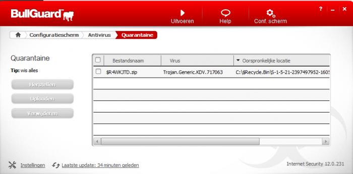 4. Volgens mij is het opgelost.Ik keek in mijn geschiedenis van bullguard en er stond een bestand in quarantaine(bijlage). Ik heb dat bestand verwijderd en tot nu toe nog geen last van gehad.