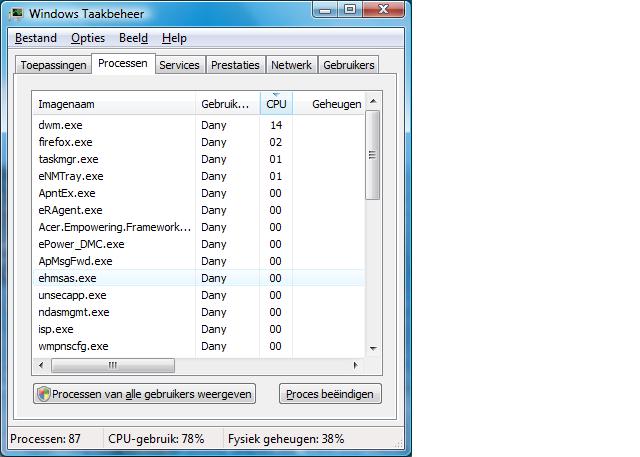 Sinds enige tijd heb ik opgemerkt dat mijn laptop soms traag reageert. Cpu belasting in rust op ongeveer 65%. Reeds gescand op virussen en malware maar niets gevonden. Is er soms iemand die meer weet te vertellen over dit fenomeen? Processor AMD Turion 64x2 2Ghz 4Gb ram geheugen