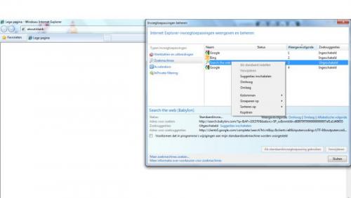 Bedankt voor de zeer duidelijk omschrijving! Ik heb het allemaal gedaan, echter hou ik nog steeds de zoekmachine waarvan de verwijderknop niet gebruikt kan worden.. K zou een printscreen er van kunnen maken?