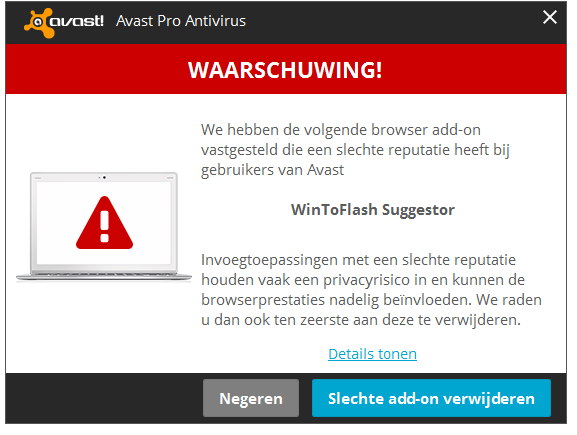 Ik had inderdaad de installer aangeduid met de rode pijl gedownload, maar ik had quick setup gekozen. Nu heb ik het geprobeerd met "custom setup" en tot nu toe nog geen melding van Avast gehad.