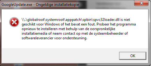 Beste Ik krijg al een tijdje een popup als ik chrome wil opstarten die zegt dat ik een ongeldige installatiekopie gebruik, ik heb vervolgens chrome opnieuw probereren te installeren maar opnieuw kreeg ik een foutmelding (zie afbeelding): . Hoe komt dit en hoe kan ik dit oplossen? Alvast bedankt
