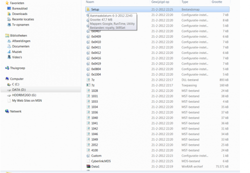 7. Openen met winrar gebeurt vermoed ik, maar het staat niet in het lijstje! Ik heb 7zip verwijderd van mijn computer. Wanneer ik open met openen of met administrator, het loopt altijd fout. Hoe kan ik winrar kiezen? ---------- Post toegevoegd om 22:54 ---------- Vorige post was om 22:40 ---------- Ik heb de file met het winrarprogramma geopend vanuit start. Maar ik heb wel een ander resultaat, zie maar: