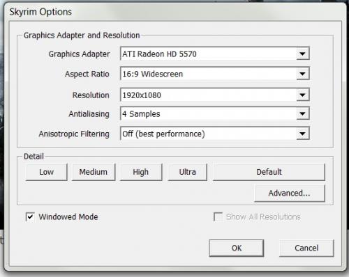 Dat zegt ie. Alles is up to date denk ik. - - - Updated - - - Btw, als ik Skyrim op Medium settings in windowed draai, doet 'ie het wel (en met een hogere resolutie dan waar ik op speel in full screen mode).. Vind 'k beetje vreemd..