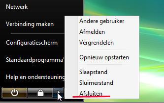 Ik had daarstraks een ander antwoord gelezen en wou dat uitpluizen, van configuratiescherm enz... maar nu lees ik wat anders? Via het tweede screenshot is toch de normale procedure van afsluiten, hoe komt het dan dat ik op twee vista's hier een andere afsluit procedure heb, ik heb nochthans via de dvd vista op de twee computers geinstalleerd op de (hoop ik) juiste wijze