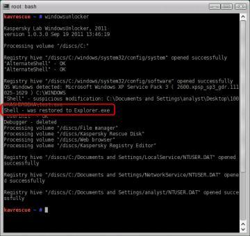 Dag Michael, Welkom op PCH! 1. Download de onderstaande ISO en bijbehorende utility. Kaspersky Rescue Disk (ISO) rescue2usb.exe 2. Kaspersky Rescue USB stick maken Dubbelklik op rescue2usb.exe, dit is een Winrar self-extracting archive. Klik op "Install" en de Kaspersky Rescue Disk maker zal gestart worden. Klik op "Browse" en selecteer de gedownloade Kaspersky Rescue Disk (ISO) en klik op "Openen" Kies bij "USB Medium:" de gebruikte USB stick, als deze niet standaard is geselecteerd. Klik nu op "Start" en de benodigde bestanden vanuit de ISO zullen naar de USB stick worden gekopieerd. Als het kopiëren gereed is zal u de volgende melding krijgen; 'Kaspersky USB Rescue Disk has been succesfully created'. Klik in dit scherm op "OK" en sluit de Kaspersky Rescue Disk maker. Start die PC opnieuw op. Druk op F11 en selecteer dan je USB stick om het rescue systeem van Kaspersky te starten. Bij “Press any key to enter the menu” druk je op gelijk welke toets om het menu van de Kaspersky Rescue CD te openen. · Kies in het volgende scherm de optie "Kaspersky Rescue Disk - Grafische modus" en druk op enter. Windowsunlocker Als de computer is opgestart van de Kaspersky Rescue CD klik dan op de start (KDE) knop in de taakbalk en klik op "Terminal" Geef in de terminal het commando windowsunlocker op gevolgd door enter. Via de terminal zullen nu de registerwaarden die door de ransomware infectie zijn aangemaakt hersteld worden. In het rode kader hieronder kunt u zien dat de registerwaarden zijn hersteld. Herstart de computer.