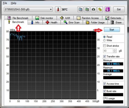 Heb je het ISO bestand op cd gebrand zoals HIER staat beschreven? Ondertussen mag je ook het volgende uitvoeren: Start HDTune opnieuw. Ga naar de tab Benchmark en start de test. Laat deze lopen tot het gedaan is en plaats er dan hier een screenshot ervan.