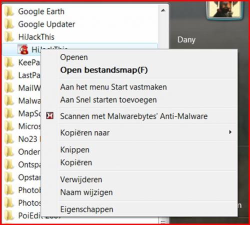 Allereerst proficiat voor de schitterende handleiding vor Hijack This hier in het forum. Heb net voor iemand een XP pc met virussen opgekuist en deze uitleg heeft mij erg geholpen. Ik heb weliswaar geen enkel probleem met mijn eigen Dell Vista pc maar ik heb er toch maar Hijack This opgezet. Ik heb het laten lopen en krijg een bericht dat Hijack this geen toegang krijgt tot de Host file. De oplossing wordt door Hijack This zelf aangegeven: rechtsklikken op het Hijack This icoon en uitvoeren als administrator. Hoewel ik als enige de pc gebruik met administrator rechten heb ik dit al meermaals meegemaakt. Alleen krijg ik nu, als ik rechtsklik op het icoon, niet de optie "als administrator uitvoeren" Ik zie enkel dit: