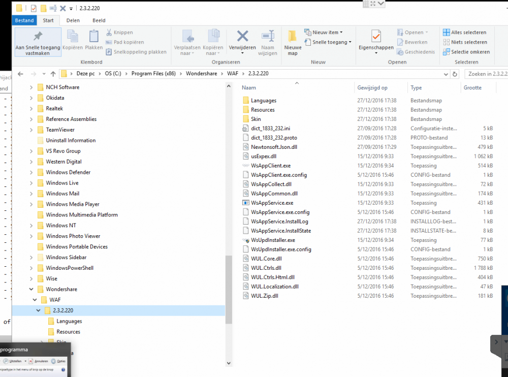 Kon vandaag al even in PC Wondershare was niet te vinden in de lijst van CCleaner. Ook nog eens gekeken met Revo maar niets. Ik heb dan gekeken in C:ProgramFiles(86)\Wondershare. Er zat een uninstall.exe in. Deze laten lopen en dan een paar keer CCleaner registeropkuis. Alles is gelukt. Dus die Wondershare is weg en kan geen last meer berokkenen. Superbedankt voor de hulp! Moet ik nog iets doen om deze thread op opgelost te zetten? Ik zie ook niet hoe ik je bedankpunt moet geven. Zal het aan Zeerover moeten vragen want die kon het wel -