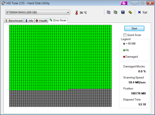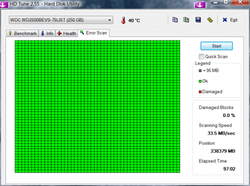 Ik ontdek dat ik 2 harde schijven heb. Heb voor beide HDTune laten lopen. C partitie staat op de WDC schijf Bijgevoegd afbeeldingen Error scans en Benchmarks. Error scans geen fouten. Ga nu Speccy installeren en runnen. -