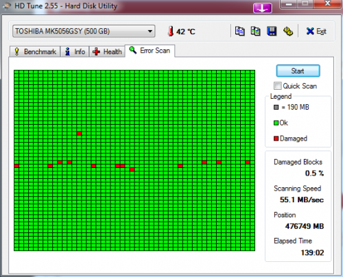 'k Vrees dat er nogal wat rood tussen zit. Zie bijlage. En? Wat is het verdict? Nieuwe HD kopen? harddisk scan.docx