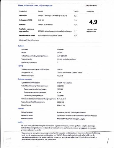 ik heb een prestatie index uitgevoerd kunnen jullie mij vertellen wat de gegevens precies inhouden??of moer er het een of ander aan mijn laptop gebeuren? die 4,9 is dat een goede waarde?