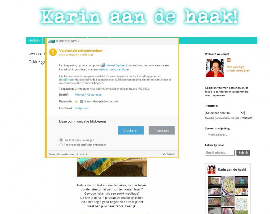 Malware in internet explorer 11 (W8.1)romijo reageerde op romijo's topic in Archief Bestrijding malware & virussen als ik deze site open, is gewoon iemand die haakpatronen deelt, voorheen geen probleem nu telkens dit zou er dat iets mee te maken hebben?
