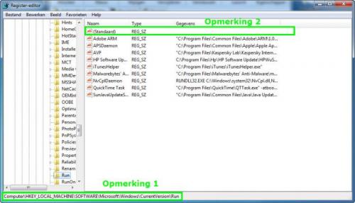 Hallo Na de installatie van Codestuff Starter wou ik graag een programma uit de automatische opstartlijst verwijderen. Het programma werkt ook zoals het hoort. Alleen zie ik in de opstartlijst een lege vak staan bovenaan. Ik ben er zeker van dat dit geen malware, virus of wathever is want mijn PC is clean. (Net nieuwe installatie gedaan.) Wat ik zie ziet er dus als volgt uit: Als ik er dan met de rechtermuisknop op klik en ik klik op "Ga naar registersleutel" of iets dergelijks, dan zie ik het volgende scherm: Ik heb dit eens gegoogeld en ik kwam tot de conclusie dat dit misschien iets te maken heeft met Kaspersky. Ondanks dat deze bronnen van 2006 zijn lijkt mijn probleem er toch heel erg op. Bronnen: KAV6 Hidden Start-up Key? - Kaspersky Lab Forum CodeStuff ~ View topic - Blank field in Starter Op die forums beweren ze dat Kaspersky bij het installeren de standaard key (Opmerking 2) de standaard waarde, namelijk "(geen waarde ingesteld)" zou veranderen naar "" (gewoon leeg dus). Ook zeggen ze daar het register pad "Computer\HKEY_LOCAL_MACHINE\SOFTWARE\Microsoft\Windows\CurrentVersion\Run" is. Dat is bij mij ook het geval (Opmerking 1), logisch denk ik dan omdat alle opstartprogramma's in dat register pad staan. Wel even vermelden dat zowel MSConfig, CCleaner en Revo Uninstaller Freeware dit leeg vak niet in de opstartlijst hebben staan. Ik denk dat Codestuff Starter dit leeg vak leest omdat de standaard waarde "(geen waarde ingesteld)" is veranderd naar "" (leeg) en dit programma denkt waarschijnlijk dat het bij de opstartprogramma's hoort. De anderen lezen dit leeg vak niet omdat het geen inhoud heeft waarschijnlijk. Kan iemand mij helpen zodat ik van dit leeg vak afkom in Codestuff Starter? En dit liefst zonder iets fout te doen of zonder de delete optie te gebruiken in Codestuff Starter. En kan iemand bevestigen dat dit inderdaad door de installatie van Kaspersky kan komen? Opmerking: ik heb KIS 2012. Alvast bedankt! Mvg