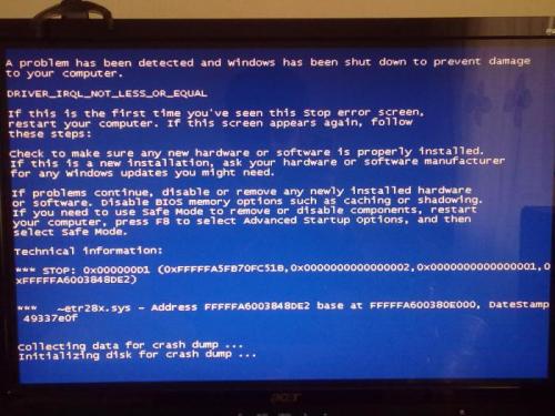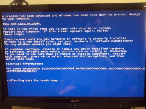 Hallo jongens, Ik zit hier met een serieus probleem. Ik krijg constant bij het Gamen (En heel soms youtube video's bekijken) veel Blue screen of Deaths. Of mijn computer loopt gewoon vast, en het geluid loopt dan ook vast en ik kan niks doen, maar alleen opnieuw opstarten. Elke keer is het een andere error. De ene keer met NTFS.sys, dan IRQL_LESS_OR_EQUAL, dan weer 0x1e etc. Het is heel frustrerend, het gebeurt ook alleen bij het gamen en niet bij andere dingen. Ik heb hier al 2 maanden last van, en ik hoop dat jullie me echt kunnen helpen Ook is er een probleem met Safe Mode. Als ik in Safe mode wil gaan, wordt alles geladen en daarna zie ik een zwart scherm met in het midden mijn muis en daarna restart mijn computer gewoon. Ik hoop dat jullie me echt kunnen helpen. Bedankt Alvast ! Computer Specs : Besturingssysteem : Windows Vista Home Premium. Systeemmodel : Acer Aspire X5810 Processor : Intel® Core Quad CPU Q8300 @2.50 GHz (4 CPU'S) Geheugen : 5118MB Videokaart : NVIDIA Geforce GT 420 (1GB) BIOS : Default System BIOS.