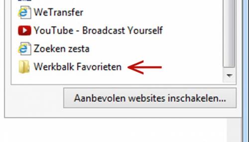 werkbalk Favorieten in het overzicht favorieten in IE10