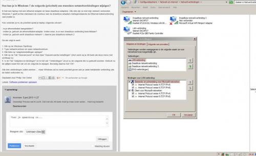 6. Beste, Mijn PC draait (nog altijd) op Win 7. Mijn provider is Telenet. Mijn PC is bekabeld aangesloten op de modem van Telenet. Maar toch neemt de Wifi altijd de bovenhand, ondanks de afstand en de betonnen vloer die er tussen zit. Ik heb al de volgorde gewijzigd - zie bijlage, maar toch blijft Wifi zich opdringen. Ten einde raad heb ik dan maar via Netwerkverbindingen mijn WLAN manueel uitgeschakeld. Maar is er een andere manier om WiFi ingeschakeld te laten en toch de voorrang te geven aan de ethernetkabel ? mvrgr, Dirk