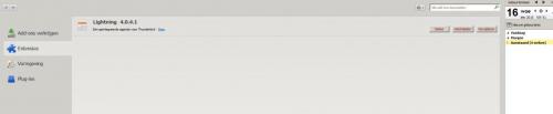 15. Ik vermoed dat Lightning bij mij is geactiveerd (zie bijlage). Ik kan in ieder geval in de agenda werken. Wat betreft suggestie van Veng (Norton Disk), daar wacht ik voorlopig nog even mee. Ik heb gisteren een volledige disk check gedaan via AVG antivirus Free over de volledige PC en hij gaf geen bedreigingen aan. Ik leg me nu dus toe op Thunderbird. mvrgr, Dirk