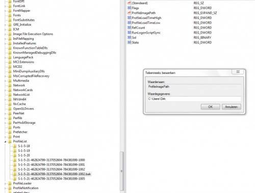 De Service user profile verhindert het aanmelden...DeeWee plaatste een topic in Archief Windows Algemeen Beste, ... Gebruikersprofiel kan niet worden geladen. Deze melding krijg ik al ik mij wil aanmelden op mijn PC met mijn vaste account met administratorrechten. Ik kan mij nu enkel aanmelden via mijn reserveprofiel, maar hier heb ik geen administratorrechten. Ik heb al diverse malen heropgestart, geen oplossing echter. Ook wilde ik zoals vroeger opstarten via F8, maar het probleem is dat ik nooit meer de opstartprocedure kan zien vooraleer het Windows-logo verschijnt. Bij mij verschijnt na een tijdje zwart scherm, direct het aanmeldingsscherm met mijn account en mijn reserve-account. Dus als ik op F8 druk, komt er zelfs geen aanmeldingsscherm te voorschijn. Vraag 1 is dan ook: hoe kan ik in deze omstandigheden toch nog in Veilige Modus opstarten ? De alternatieve methode is die via de oplossing van Microsoft en dat is in het register wijzigingen aanbrengen. Nu vind ik die bewuste sleutel wel, maar ik vind daar meerdere waarden met S1-5-21 en een hoop getallen erachter, waardoor ik niet zeker ben of ik wel de juiste zou uitkiezen. Als ik dus dubbelklik op die sleutel met .BAK, dan herken ik daar mijn account "DIRK" in die nu niet meer kan opstarten. Maar welke sleutel moet ik dan als tweede nemen om die dan eerst te wijzigen met de extensie: .BA ? Vraag 2 is dan ook, welke sleutels moet ik wijzigen naar .BA en naar .BAK in mijn situatie ? Zijn er andere methodes om mijn PC terug opgestart te krijgen ? mvrgr, Dirk