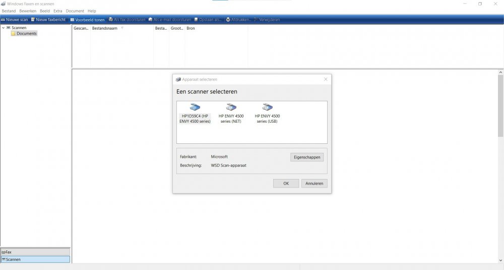Via deze weg = werkt prima. Via de Printer = niet , krijg melding Scannen verbinding met PC = Verbindings fout.