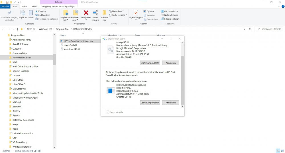 Hallo er is een probleem. Het lukt niet de HP software te verwijderen in de Veiligemodus .Er stond dan : Kan geen toegang krijgen tot Windows Installer Service. Dit kan optreden als de Windows Installer onjuist is geinstalleerd . Kon ook niet uit de Veiligemodus geraken. Is nu opgelost en ik heb de HP software via Revo Uninstaller verwijdert . Zie bijlage :