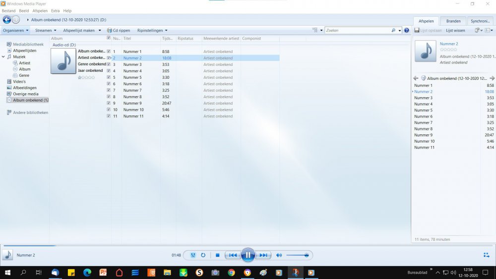 Ik snap er nu niets meer van. Ik heb alle aanwijzigingen opgevolgd ook van Windowshelpdesk en de CD opnieuw geript en er is dus niets verandert (zie afbeelding) in de rechter kolom kan je zien dat het een ratje toe is.