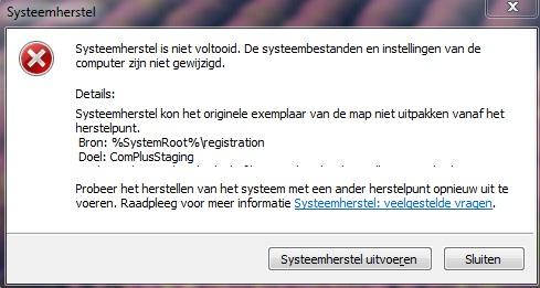 geen 1 methode werkt, er is gewoon een fout waardoor de systemherstel niet werkt, hopelijk kunt u erachter vinden wat die fout is.. -
