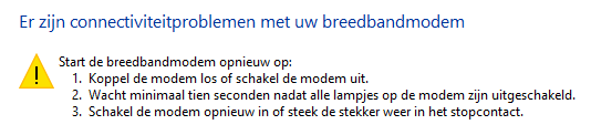 1. Na een weekendje proberen: 1. via wifi krijgt mijn pc problemen in de browser terwijl andere pc's, smartphones, ... gewoon kunnen verder werken. 2. om de x minuten blijft chrome haperen. Dit manifesteert zich door "Google Chrome (reageert niet)" in de titelbalk; "wachten op ..." of "Host vaststellen"; het zandlopertje dat blijft draaien. 3. Andere browser Edge geprobeerd. Daar blijft gewoon het zandlopertje draaien. Het probleem doet zich ongeveer op hetzelfde moment voor. 4. Als ik dan netwerkcontrole van Windows 10 doe zegt die: "problemen met breedbandmodem, de verbinding tussen toegangspunt en internet is defect" en "standaardgateway is niet beschikbaar" 5. Na enige tijd (5 à 10 minuten) komt alles weer ok en kan ik even verder werken totdat hetzelfde probleem zich voordoet. 6. Via de kabel lijkt alles normaal te werken. Ik voeg een aantal schermknipsels bij.