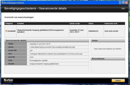 in beveiliging ben ik een leek, ik heb als anti virus norton, maar de berichtgeving komt van het programma op de afbeelding. ik weet niet waar het verschil zit.