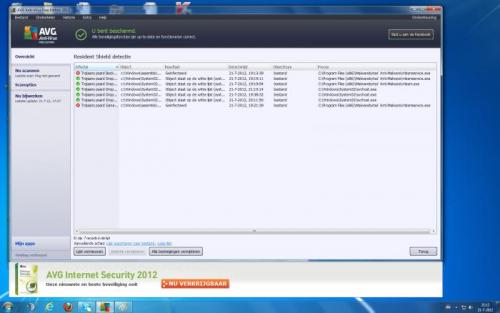 Hier is het log bestandje : # AdwCleaner v3.018 - Report created 28/01/2014 at 17:53:48 # Updated 28/01/2014 by Xplode # Operating System : Windows 7 Home Premium Service Pack 1 (64 bits) # Username : Gebruiker - GEBRUIKER-PC # Running from : C:\Users\Gebruiker\Desktop\adwcleaner.exe # Option : Clean ***** [ Services ] ***** ***** [ Files / Folders ] ***** ***** [ Shortcuts ] ***** ***** [ Registry ] ***** Key Deleted : HKLM\SOFTWARE\Classes\CLSID\{DE9028D0-5FFA-4E69-94E3-89EE8741F468} Key Deleted : HKLM\SOFTWARE\Classes\CLSID\{E7DF6BFF-55A5-4EB7-A673-4ED3E9456D39} Key Deleted : HKLM\SOFTWARE\Classes\Interface\{03E2A1F3-4402-4121-8B35-733216D61217} Key Deleted : HKLM\SOFTWARE\Classes\Interface\{31E3BC75-2A09-4CFF-9C92-8D0ED8D1DC0F} Key Deleted : HKLM\SOFTWARE\Classes\Interface\{79FB5FC8-44B9-4AF5-BADD-CCE547F953E5} Key Deleted : HKLM\SOFTWARE\Classes\Interface\{9E3B11F6-4179-4603-A71B-A55F4BCB0BEC} Key Deleted : HKLM\SOFTWARE\Classes\TypeLib\{13ABD093-D46F-40DF-A608-47E162EC799D} Key Deleted : HKLM\SOFTWARE\Classes\TypeLib\{9C049BA6-EA47-4AC3-AED6-A66D8DC9E1D8} Key Deleted : HKLM\SOFTWARE\Classes\TypeLib\{E2343056-CC08-46AC-B898-BFC7ACF4E755} Key Deleted : [x64] HKLM\SOFTWARE\Classes\Interface\{03E2A1F3-4402-4121-8B35-733216D61217} Key Deleted : [x64] HKLM\SOFTWARE\Classes\Interface\{31E3BC75-2A09-4CFF-9C92-8D0ED8D1DC0F} Key Deleted : [x64] HKLM\SOFTWARE\Classes\Interface\{9E3B11F6-4179-4603-A71B-A55F4BCB0BEC} Key Deleted : HKCU\Software\AppDataLow\SProtector Key Deleted : HKLM\Software\AVG Security Toolbar Key Deleted : HKLM\Software\InstallIQ Key Deleted : HKLM\Software\SP Global Key Deleted : HKLM\Software\SProtector ***** [ Browsers ] ***** -\\ Internet Explorer v11.0.9600.16428 -\\ Mozilla Firefox v21.0 (nl) [ File : C:\Users\Gebruiker\AppData\Roaming\Mozilla\Firefox\Profiles\geo9ea4c.default\prefs.js ] Line Deleted : user_pref("aol_toolbar.default.homepage.check", false); Line Deleted : user_pref("aol_toolbar.default.search.check", false); -\\ Google Chrome v32.0.1700.76 [ File : C:\Users\Gebruiker\AppData\Local\Google\Chrome\User Data\Default\preferences ] ************************* AdwCleaner[R0].txt - [2273 octets] - [28/01/2014 17:53:07] AdwCleaner[s0].txt - [2220 octets] - [28/01/2014 17:53:48] ########## EOF - C:\AdwCleaner\AdwCleaner[s0].txt - [2280 octets] ##########