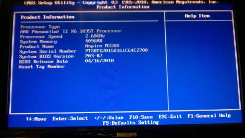 Hoi, sorry dat duurde even... De BIOS zegt "System BIOS Version P03-B2" Releasedate 04/16/2010. Zie screenshot