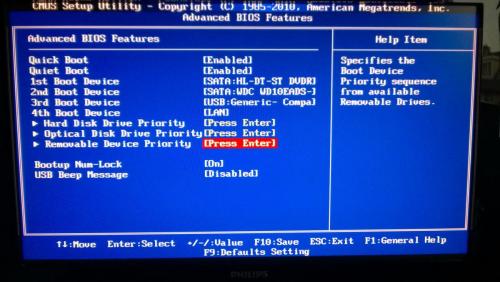 Disabled is niet mogelijk voor de USB Boot Device (scherm #1). Idem voor LAN. Alleen de volgorde kan gewijzigd. Ze staan al beide onderaan, dus dat zou goed moeten zijn. Wel heb ik in USB Boot Priority (zie scherm #2) alle USB devices DISABLED (zie scherm #3). Scherm #4 geeft aan wat er oorspronkelijk stond. Daar staat geen externe HDD bij, volgens mij. Daarna opnieuw opgestart MET de externe HDD (Seagate) via USB aangesloten. Dit geeft direct hetzelfde probleem. Na het logo scherm van Acer gaat het scherm op zwart en komt de PC niet verder.
