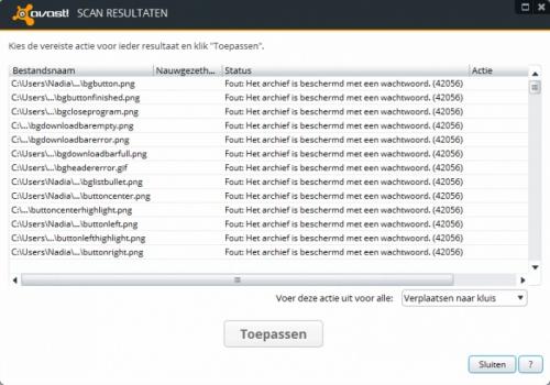 Volledige systeemscan gedaan, niks gevonden maar Avast zegt dat er een heleboel bestanden niet gescand konden worden allemaal met dezelfde melding "fout: Het archief is beschermd met een wachtwoord" Even een screenshot: -