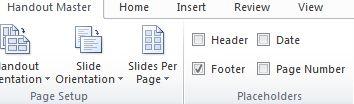 Heeft er iemand enig idee hoe ik dit kan regelen? Ik had in Powerpoint zelf eerst geprobeerd via de header & footer optie, maar rechtsbeneden is de 'pagina' functie, iets wat ik niet kan aanpassen. Links beneden kan ik het wel zetten maar het moet rechts staan. Slide Master functie en de footer rechts beneden daar aangepast ook geprobeerd maar er komt dan niets op het PFD file tevoorschijn. Graag hulp! -