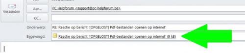 Bij reactie wordt de oorspronkelijke mail dicht geklapt