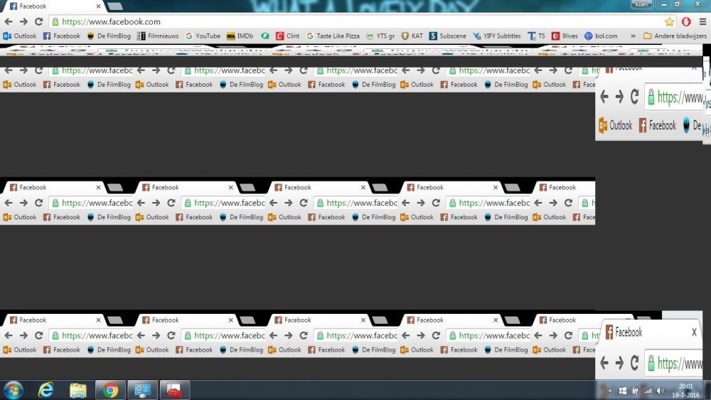 Nog geen verbetering ... Ik denk dat het met chrome te maken heeft, door een of andere reden werken de video's niet ( krijg ik foutmelding te lezen of meteen volledig zwart scherm ). Ook andere tabbladen die op dat moment open staan gaan ook op zwart scherm en ik kan dan enkel chrome volledig sluiten om het probleem op te lossen. Ik kan chrome nog eens herinstalleren, al heb ik dat al is gedaan maar zonder resultaat. Als ik Facebook op internet explorer open heb ik geen enkel probleem. Dusja, eigenlijk is het niet zo een ramp, ik kom nauwelijks op FB en als ik er nu eens op kijk doe ik het via explorer. Tenzij je nog andere oplossingen weet kunnen we die nog is proberen, maar anders is het ok voor mij hoor.