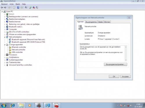 Bij netwerkadapters staat : bluetooth apparaat ( personal area network) bluetooth apparaat ( rfcomm protocol tdi ) bij overige apparaten : ethernet controller netwerkcontroller usb controller Maar deze 3 zijn niet geïnstalleerd (code 28). Moet ik dan achter drivers zoeken (zo ja, welke drivers moet ik juist hebben of welke zoekterm gebruik ik ,) of moet ik deze verwijderen ? - - - Updated - - - Of alle noodzakelijke drivers geïnstalleerd zijn zou ik niet kunnen zeggen, heb de laptop nog niet echt kunnen testen en wat chipsetdrivers zijn weet ik eigenlijk niet