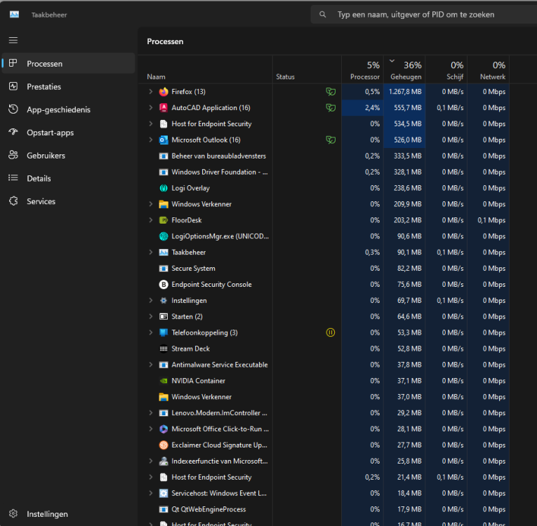 Beste, ik heb een nieuwe laptop gekregen op het werk. Ik ben er niet tevreden mee. Ik vind het niet sneller dan mijn oude PC. Hij blaast ook nogal snel om te koelen. Kunnen jullie de specs even bekijken welke het beste is? Of de laptop effectief minder is dan de PC die ik had? Ik denk dat de huidige 2.20 GHz processor flink te kort komt tegenover mijn vorige 3,60 GHz. De 32 RAM tov 16GB ram gaat volgens mij niet zoveel verschil geven. Het is een laptop waar ik Outlook, Autocad en nog één ander niet zo zwaar programma op run. EDIT: en blijkbaar is Firefox met 1 tablat open ook stevig. Dan weet ik waar ze op moeten letten als ze mij nog eens een nieuwe geven. PS: mijn overige collega's hebben allemaal een Z-book. Welke wel een stuk beter is dan mijn laptop denk ik dan.