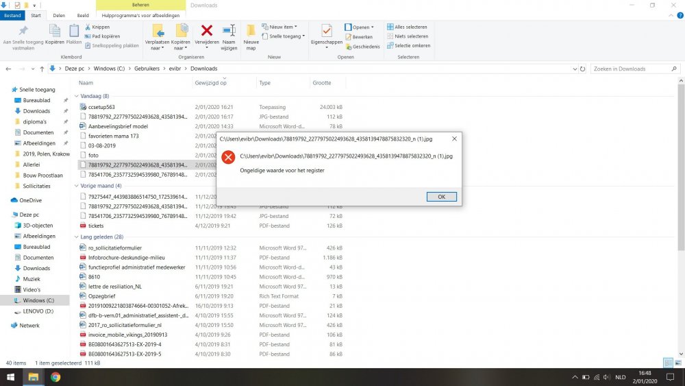 Hoi, ik heb hetvolgende probleem. Als ik foto's wil openen krijg ik volgende foutmelding: ongeldige waarde voor het register. Ik heb zo al eens iets geprobeerd waarbij ik in Powershell iets moet laten runnen maar dit helpt niet. Ook als ik een nieuwe afbeelding maak, met een screenshot, die ik dan in paint plak. Daarna bewaar op mijn pc. Krijg ik deze niet open, zelfde foutmelding. Ik heb dit probleem op het account van mijn partner. Op mijn account heb ik dit probleem niet. Is uiteraard op dezelfde pc. Wat ik ook merk is dat windows voor het openen van foto's, de app TWINIU wil gebruiken. Welke ik niet ken. Ook staan al de bestanden ineens op het pad onedrive/.... en niet meer op deze computer (c-schijf). Iemand een idee wat hier fout is gegaan want dit is zeer vreemd. Elke tip is welkom. Groetjes.