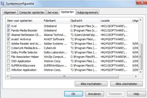 de laptop is nog even langzaam als eerst - - - Updated - - - oh, ik heb een paar dagen geleden wel een paar verdachte programma's uitgeschakeld (winstron corp), kunnen deze nog actief zijn?