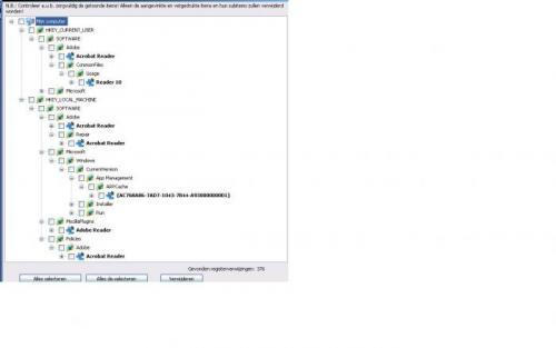 ben klaar met ccleaner, maar adobe staat er nog altijd op, ik ga het nu herinstalleren ---------- Post toegevoegd om 19:58 ---------- Vorige post was om 19:54 ---------- krijg ook hier dezelfde melding over hetzelfde bestand, pc kan het niet vinden, dus ik kan het niet installeren ---------- Post toegevoegd om 20:00 ---------- Vorige post was om 19:58 ---------- .... en nu zegt die toch installatie voltooid, en vraagt ie om de pc te herstarten zal dit maar eens proberen zeker, tot zo