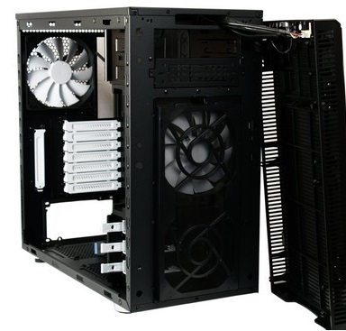 Beste forumleden, Na wat opzoekwerk heb ik besloten om een Fractal Design Define R4 als behuizing te nemen, vooral omwille van de geluidsdemping… en omdat het er erg strak uitziet J De case komt standaard met 2 ventilatoren: 1 inlaat (voorkant) en 1 uitlaat (achterkant). Aerodynamica leert ons echter dat een massive CPU luchtkoeler in het midden van de computercase de luchtstroming niet ten goede komt. ;-) Vooral daarom zou ik een meer discrete waterkoeler willen gebruiken: de Corsair Hydro Series H80i. De ventilator (en radiator) zou ik aan de achterkant van de computercase bevestigen (zoals op onderstaande foto). De ventilator die normaal gezien op deze plaats is bevestigd, verhuist naar de voorkant en zal dienst doen als luchtinlaat. Zo zal ik in totaal 2 inlaatventilatoren hebben en 1 uitlaat (= ventilator van de waterkoeler), wat resulteert in een hogere druk in de case dan buiten. Wat denken jullie hiervan? Zou deze set-up een voldoende koeling bieden voor de CPU (Intel Haswell-E i7-5930K) en de GPU (NVIDIA Quadro K2000)?